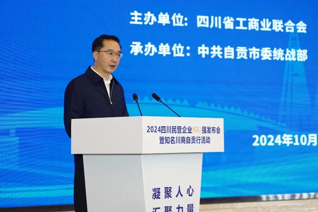 10月29日,由四川省工商联、中共自贡市委、自贡市人民政府主办的2024四川民营企业100强发布会暨知名川商自贡行活动在自贡市举行。省委常委、统战部部长赵俊民出席并讲话,省工商联主席唐燕发布2024四川民营企业100强、制造业100强、服务业50强三个榜单及调研分析报告,省发展改革委党组成员、副主任李明騄,省经济和信息化厅副厅长王朝勇,省商务厅党组成员、副厅长陈友清参会并发言,自贡市委副书记、市长石钢致辞,省委统战部副部长、省工商联党组书记唐强主持活动。