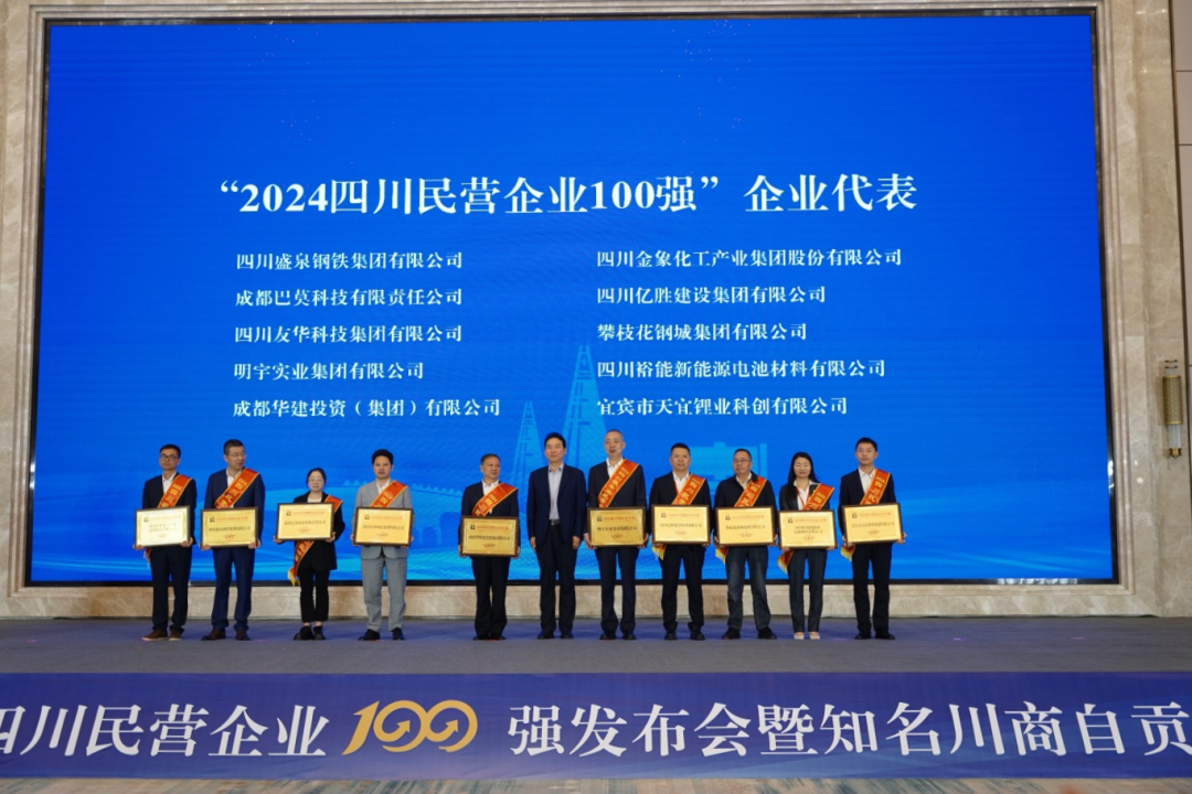 赵俊民为上榜2024四川民营企业100强、制造业100强、服务业50强三个榜单的企业代表颁发证书。